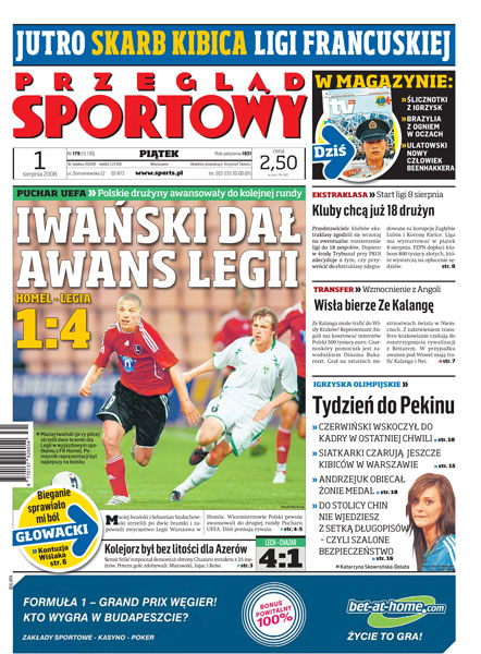 Po meczach Lech-Chazar, Homel-Legia: polskie drużyny w kolejnej rundzie Pucharu UEFA; Przemysław Czerwiński awansował ostatniego dnia w ostatniej próbie; polscy sportowcy przed olimpiadą; Tomasz Adamek żegna się z krajem; komu kibicują polscy sportowcy (Tempo TV).