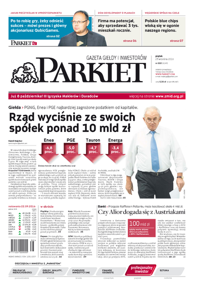 Największy w Polsce newsroom gospodarczy zbiera, analizuje i zgłębia dla Państwa najważniejsze informacje ze świata finansów. Codzienne wydanie „Parkietu”, sześć dni w tygodniu, to kilkadziesiąt artykułów o emitentach, instytucjach finansowych, gospodarce. To również opinie, felietony i wywiady z najważniejszymi ludźmi krajowej i globalnej finansjery.