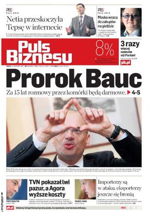 Jarosław Bauc wróży komórkom przejęcie funkcji kart płatniczych i darmowe rozmowy, bardzo dobre wyniki TVN, LC Corp i Assceco Poland, Agora słabiej od oczekiwań, w I kwartale Netia pobiła TP SA w Internecie, Krzysztof Moska już od miesiąca kupuje akcje, Hestia dogania Wartę, od sześciu tygodni nie było żadnego debiutu na głównym parkiecie GPW, z powodu silnego złotego narasta deficyt w handlu zagranicznym.