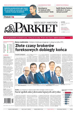 Największy w Polsce newsroom gospodarczy zbiera, analizuje i zgłębia dla Państwa najważniejsze informacje ze świata finansów. Codzienne wydanie „Parkietu”, sześć dni w tygodniu, to kilkadziesiąt artykułów o emitentach, instytucjach finansowych, gospodarce. To również opinie, felietony i wywiady z najważniejszymi ludźmi krajowej i globalnej finansjery.