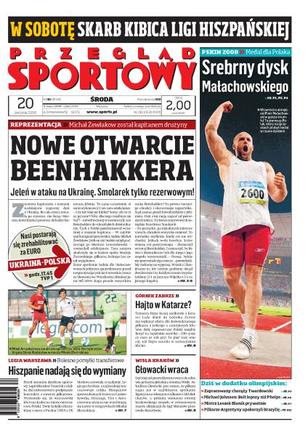 Srebrny medal olimpijski starszego szeregowego Piotra Małachowskiego, szczypiorniści szykują się na Islandię, Leszek Blanik i jego trener, sromotna porażka Brazylii w meczu z Argentyną, dziś Usain Bolt pobiegnie na 200 m. Ponadto: Michał Żewłakow kapitanem reprezentacji piłkarzy, nowe twarze na mecz z Ukrainą, nieudane transfery Legii Warszawa, Tomasz Hajto dostał ofertę z Kataru, Andrzej Gołota może wystąpić na chińskim ringu.