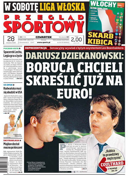 Sensacyjny wywiad z Dariuszem Dziekanowskim, byłym asystentem Leo Beenhakkera; przed meczami Grasshopper-Lech i FK Moskwa-Legia; rozmowa z Donovanem Baileyem, gwiazdą sprintu i Davidem Coulthardem, wicemistrzem świata F1; Radosław Majdan płaci wysoką cenę za incydent w Mielnie.