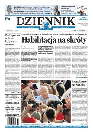 Lech Kaczyński będzie chciał uczestniczyć w kolejnych szczytach UE; powstaje nowa formacja centrolewicowa, na pierwszy kongres zaproszenie otrzymają Aleksander Kwaśniewski i Lech Wałęsa; Palikot, Ziobro i Jarosław Kaczyński to najbarwniejsi polscy politycy; polscy naukowcy w ekspresowym tempie zdobywają habilitację na słowackim uniwersytecie; Ukraina liczy na zacieśnienie współpracy z UE; huragan Gustav pozwolił McCainowi sprawdzić się w roli męża stanu; Google wypuścił własną przeglądarkę internetową; polska proza zraża do siebie czytelników; Agnieszka Radwańska odpadła z US Open. Dodatki: The Wall Street Journal, Warszawa.