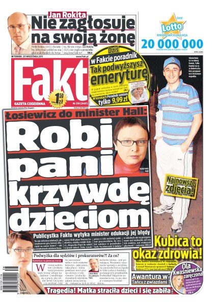 „Robi pani krzywdę dzieciom” – Łosiewicz do minister Hall; Jan Rokita nie zagłosuje na swoją żonę; Robert Kubica to okaz zdrowia – najnowsze zdjęcia; awantura w „Tańcu z Gwiazdami”; Ola Kwaśniewska zaręczona.