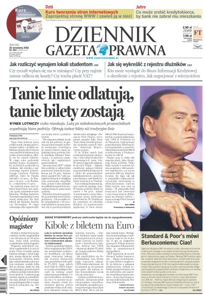 Rynek lotniczy czeka rewolucja – lukę po niskokosztowych przewoźnikach wypełniają biura podróży; jak rozliczyć wynajem lokali studentom; jak się wykreślić z rejestru dłużników; Standard & Poor's mówi Berlusconiemu ciao; zakaz stadionowy podczas mistrzostw Europy będzie nie do wyegzekwowania.