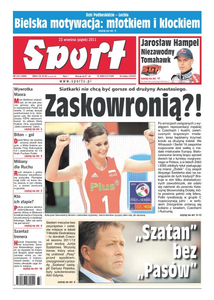 Polskie siatkarki nie chcą być gorsze od męskiej drużyny Anastasiego; Jarosław Hampel – niezawodny Tomahawk; Maor Melikson oświadczył, że nie jest jeszcze gotowy aby grać w reprezentacji Polski lub Izraela; Ruch otrzyma z gminy Chorzów dwumilionową pożyczkę; policja powinna wkrótce zidentyfikować chuliganów, którzy w Gliwicach w czasie meczu z Cracovią rzucali petardy w sędziego liniowego; Jurij Szatałow zrezygnował z funkcji szkoleniowca Cracovii – zastąpił go Dariusz Pasieka, wcześniej związany z Arką Gdynia.