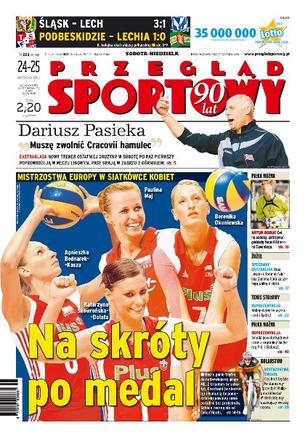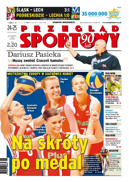 Mistrzostwa Europy w siatkówce kobiet: Polki na skróty po medal; Dariusz Pasieka, nowy trener Cracovii, ostatniej drużyny w tabeli ekstraklasy, poprowadzi ją po raz pierwszy w meczu ligowym; Śląsk zwyciężył Lecha, a Podbeskidzie w meczu z Lechią wreszcie wygrało przed własną publicznością; Artur Boruc ma cel na sobotę: zatrzymać gwiazdę Napoli Edinsona Cavaniego; w żużlowej ekstralidze Unia Leszno i Stelmet Falubaz Zielona Góra zaczynają walkę o złoto; najlepsi gracze wyrzuceni z kadry tenisa stołowego; Franciszek Smuda powołał kadrowiczów z zagranicy na mecze z Koreą Południową i Białorusią; w niedzielę najważniejszy wyścig na mistrzostwach świata w kolarstwie.
