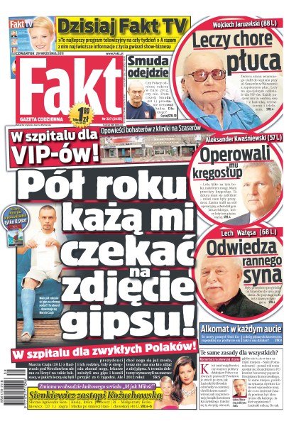 „Pół roku każą mi czekać na zdjęcie gipsu” – Marcin Czaja o tym, jak traktuje się zwykłych ludzi w szpitalu na Szaserów; Sienkiewicz zastąpi Kożuchowską – zmiana w obsadzie kultowego serialu „M jak Miłość”; alkomat w każdym aucie – nowy pomysł Unii Europejskiej na pozbycie się z dróg pijanych kierowców; Franciszek Smuda przestanie trenować polską kadrę.