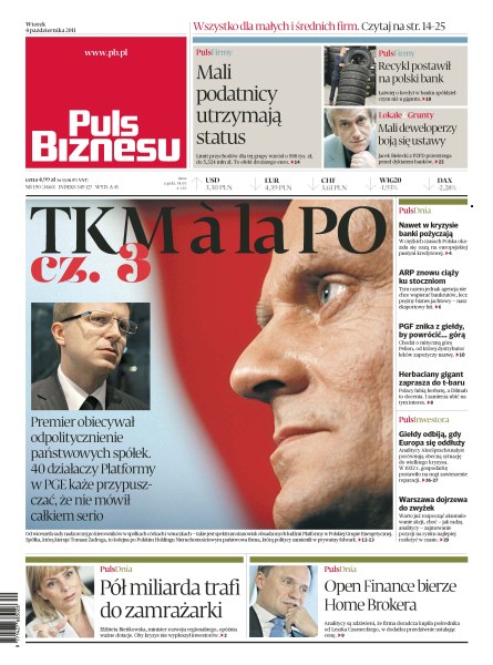 Premier mimo obietnic nie odpolitycznił państwowych spółek, 40 działaczy Platformy Obywatelskiej obsadza nadal stanowiska w Polskiej Grupie Energetycznej; mimo kryzysu banki nadal udzielają w Polsce kredytów; Elżbieta Bieńkowska, minister rozwoju regionalnego, opóźnia ważne dotacje; Agencja Rozwoju Przemysłu zamierza wydać 100-200 mln zł inwestując w budowę kadłubów do jachtów.