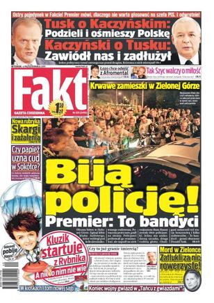 W Zielonej Górze wybuchły zamieszki po tym, jak nieoznakowany radiowóz śmiertelnie potrącił kibica Falubazu; Joanna Kluzik-Rostkowska nic nie wie o Rybniku, z którego kandyduje do Sejmu; w sklepach pojawiły się już bożonarodzeniowe produkty; Wojciech „Łozo” Łozowski chce odejść z Afromental.