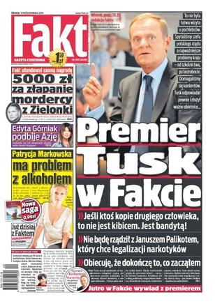 Donald Tusk odpowiada w Fakcie na pytania dotyczące szkolnictwa i bezrobocia; Grzegorz Napieralski szuka wsparcia u Aleksandra Kwaśniewskiego; prokuratura postawiła pierwsze zarzuty osobom, które brały udział w zamieszkach w Zielonej Górze; okulary z bazaru niszczą wzrok.