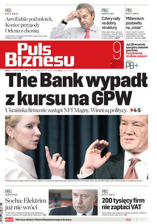 Polityczne spory między Julią Tymoszenko i Wiktorem Juszczenką zablokowały plany wejścia do Polski ukraińskiego banku; Orlen doszedł do wniosku, że rola integratora branży chemicznej nie jest dla niego; wady i zalety produktów strukturyzowanych; internetowy wywiad z Jackiem Sochą, partnerem PricewaterhouseCoopers; PO zamierza podnieść do 30 tys. EUR próg wpadania w VAT.