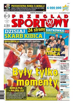 Polska zremisowała z Koreą Południową; przedostatnia runda eliminacji do Euro 2012; w Gorzowie rozstrzygnięcie ostatniej zagadki sezonu: czy Jarosław Hampel obroni tytuł wicemistrza świata; Tauron Basket Liga rozpoczyna sezon, ale bez mistrza Polski; życiowa forma Agnieszki Radwańskiej – pokonała Anę Ivanović i dziś walczy o finał; z powodu meczów reprezentacji w ekstraklasie odbywają się sparingi; Liga Mistrzów w piłce ręcznej: w weekend Orlen Wisła Płock gra w Koperze, Vive Targi Kielce w Berlinie; hit kolejki w rozgrywkach siatkarskich: mistrz Polski PGE Skra Bełchatów zagra z ZAKSĄ Kędzierzyn-Koźle.