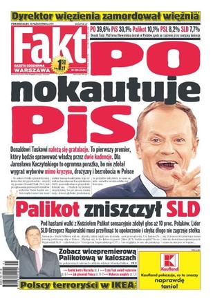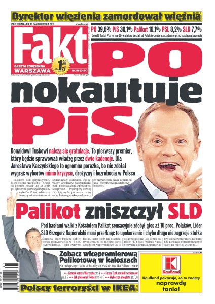 PO wygrała wybory do Sejmu, na drugim miejscu jest PiS, na trzecim Ruch Poparcia Palikota, do Sejmu wejdą też PSL i SLD; Donald Tusk jest pierwszym premierem, który będzie sprawować władzę przez dwie kadencje; Janusz Palikot pokazał, że można zbudować własną partię od podstaw; polski gang podłożył sześć bomb w sklepach Ikei, aby wymusić 6 mln euro; dyrektor więzienia w Sztumie zabił więźnia.
