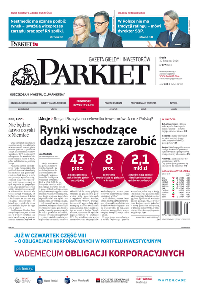 Największy w Polsce newsroom gospodarczy zbiera, analizuje i zgłębia dla Państwa najważniejsze informacje ze świata finansów. Codzienne wydanie „Parkietu”, sześć dni w tygodniu, to kilkadziesiąt artykułów o emitentach, instytucjach finansowych, gospodarce. To również opinie, felietony i wywiady z najważniejszymi ludźmi krajowej i globalnej finansjery.