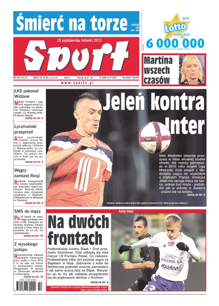 Ireneusz Jeleń mecz z Interem Mediolan zacznie na ławce – ma jednak szansę pojawić się na boisku; dziś odbędą się dwa mecze 1/8 Pucharu Polski – Podbeskidzie kontra Śląsk i Gryf przeciwko Górnikowi; ŁKS wygrał derby Łodzi pokonując Widzew 1-0; Adam Lyczmański przeprosił piłkarzy i kibiców z Białegostoku za pomyłki w sobotnim spotkaniu; Rosjanie zrezygnowali z meczu towarzyskiego z biało-czerwonymi – zastąpią ich Węgrzy.