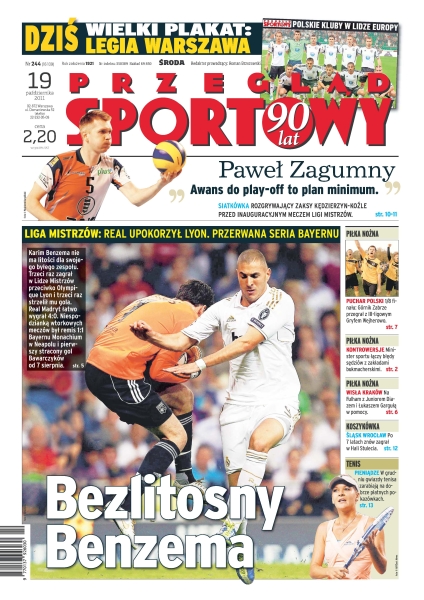 Karim Benzema nie ma litości dla Olympique Lyon – swojego byłego zespołu – po raz strzelił im gola; Bayern Monachium przerwał dobrą passę – stracił gola pierwszy raz od 7 sierpnia; „Awans do play-off to plan minimum” – Paweł Zagumny; minister sportu łączy błędy sędziów z zakładami bukmacherskimi; Wisła Kraków na Fulham z Juniorem Diazem i Łukaszem Gargułą w pomocy; Śląsk Wrocław po 7 latach znów zagrał w Hali Stulecia; w grudniu gwiazdy tenisa zarabiają na dobrze płatnych pokazówkach.