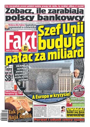 Szef Unii Europejskiej buduje pałac za miliard; zobacz ile zarabiają polscy bankowcy – czy rzeczywiście prezesi polskich banków pracują tak ciężko, by zarabiać miliony zł rocznie; uwaga – soki są bez owoców; Mariusz B. porwał i udusił cztery osoby; 3 grudnia w Lillehammer odbędzie się wspólny konkurs skoczkowy z udziałem pań; „Kapitalizm zapomniał o człowieku” – Lech Wałęsa dla Faktu.