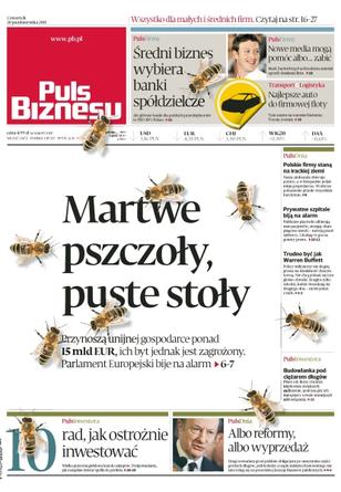 Parlament Europejski bije na alarm – byt pszczół, przynoszących unijnej gospodarce 15 mld euro, jest zagrożony; średni biznes wybiera banki spółdzielcze; nowe media mogą pomóc albo zabić – Mark Zuckerberg Facebookiem zmienił sposób działania firm; najlepsze auto do firmowej floty – test Toyoty Avensis; polskie firmy staną na irackiej ziemi; prywatne szpitale biją na alarm – publiczne placówki odbierają im pacjentów stosując metody na granicy prawa; polscy milionerzy nie kwapią się być jak Warren Buffet; 10 rad, jak ostrożnie inwestować.