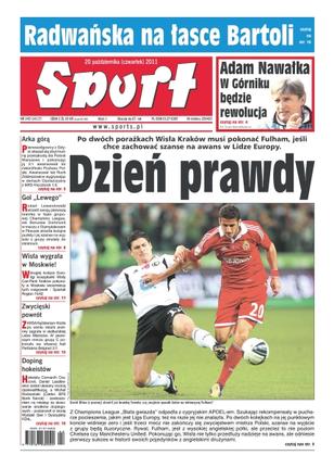 Dzień prawdy – po dwóch porażkach Wisła Kraków musi pokonać Fulham, jeśli chce zachować szanse na awans w Lidze Europy; Agnieszka Radwańska na łasce Bartoli; Arka Gdynia pokonała Polonię Warszawa 3-1 i awansowała do ćwierćfinału Pucharu Polski; Robert Lewandowski strzelił swoją pierwszą bramkę w fazie grupowej Champions League; w drugiej kolejce Euroligi koszykarki Wisły Can-Pack Kraków pokonały Spartak Region 74-62.