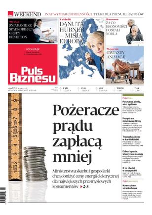 Pożeracze prądu zapłacą mniej – ministerstwa skarbu i gospodarki chcą obniżyć ceny energii elektrycznej dla największych przemysłowych konsumentów; Poczta na giełdę, ale z zyskiem – taka strategia oznacza, że w tabeli notowań spółka może pojawić się na przełomie lat 2013-14; przepis na zniszczenie firmy – jak przy pomocy prokuratora i urzędnika skarbowego przejąć Polmozbyt Kraków; Edbud upada zostawiając wierzycieli na lodzie; Paul Holmes doradza, o co chodzi w dobrym PR; przecena surowców nabiera tempa – lepsze nastroje są na rynku zbóż.