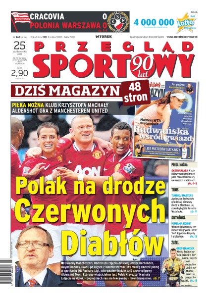 Aldershot Town – drużyna należąca do polskiego biznesmena – będzie kolejnym przeciwnikiem chcącego zmazać plamę na honorze Manchesteru United; Cracovia i Polonia Warszawa zremisowały 0-0; w najbliższy weekend może paść rekord frekwencji na naszych stadionach; Agnieszka Radwańska gra dziś pierwszy mecz w Stambule – jej pierwszą rywalką będzie Karolina Woźniacka; władze PlusLigi Kobiet zmieniły terminarz rozgrywek; Greg Hancock, Rune Holta i Janusz Kołodziej przechodzą do Azotów Unii.