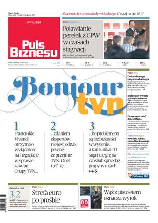 Francuskie Vivendi otrzymało wyłączność na negocjacje w sprawie zakupu Grupy TVN – eksperci jeszcze nie przesądzają sprawy; poławianie perełek z GPW w czasach stagnacji; do handlowego tanga trzeba trojga; Biotonowi wyrasta groźny konkurent; Scott Bedbury – twórca potęgi Nike i Starbucks – opowiada, jaki jest przepis na sukces; statystyczny Polak oszczędza głównie na lokacie, uczestnicy badania Pulsu Biznesu wolą zakup nieruchomości; kolejny odcinek „Państwa w państwie” – Anna Kubis sprzedawała olej opałowy, używając urządzenia, które nie spodobało się celnikom.