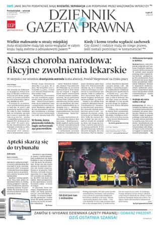 Dziennik Gazeta Prawna – codziennie obiektywne i rzetelne informacje z kraju i ze świata. Piszemy o tym, co dziś ważne i odpowiadamy na Wasze pytania – szczególnie te związane z obecnymi wyzwaniami tj. pandemia, praca zdalna. Na bieżąco wyjaśniamy zmieniające się przepisy. Wspieramy się wyjaśnieniami ministerstw i urzędów. Pomagamy unikać błędów i ostrzegamy, jakie są kary. Ponadto w każdy piątek specjalne magazynowe wydanie Dziennika Gazety Prawnej w całości z tekstami społeczno-ekonomicznymi.
