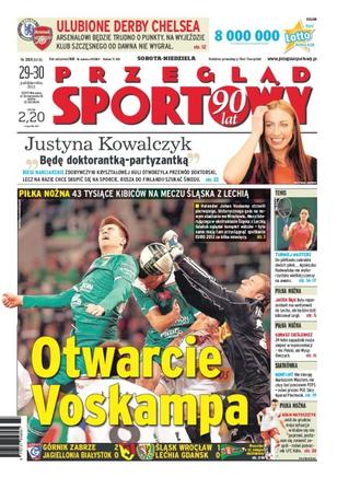 43 tys. kibiców oglądało zwycięski mecz Śląska Wrocław na nowym stadionie; Górnik po serii słabych występów zdobył trzy punkty; Jacek Bąk opowiada, że kibice z Poznania wciąż na niego warczą; historia wielkich meczów Lech-Legia w liczbach i ciekawostkach; dziś derby Londynu; Borussia rusza po mistrzostwo; Agnieszce Radwańskiej zabrakło dwóch piłek do półfinału; prezes PGE Skry Bełchatów komentuje oświadczenie Mariusza Wlazłego.