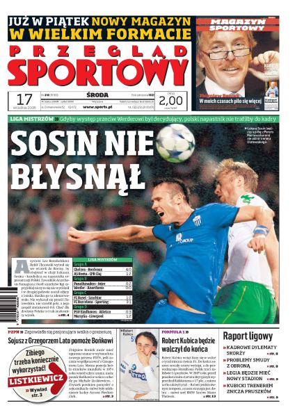 Sojusz z Grzegorzem Lato ma pomóc Bońkowi wygrać wybory na prezesa PZPN; wywiad z Michałem Listkiewiczem; ruszyła Liga Mistrzów, największą niespodziankę sprawił mistrz Rumunii; Cristiano Ronaldo wraca do gry po wyleczeniu kontuzji, czy kibice znowu go pokochają; problemy kadrowe Wisły Kraków przed meczem z Tottenhamem; więcej pieniędzy na budowę stadionu Legii, radni dodadzą 100 milionów złotych; Angelo Furlan był najszybszy na finiszu trzeciego etapu Tour De Pologne.