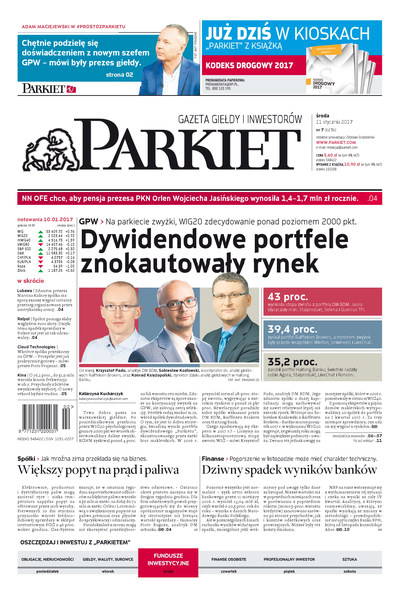Największy w Polsce newsroom gospodarczy zbiera, analizuje i zgłębia dla Państwa najważniejsze informacje ze świata finansów. Codzienne wydanie „Parkietu”, sześć dni w tygodniu, to kilkadziesiąt artykułów o emitentach, instytucjach finansowych, gospodarce. To również opinie, felietony i wywiady z najważniejszymi ludźmi krajowej i globalnej finansjery.