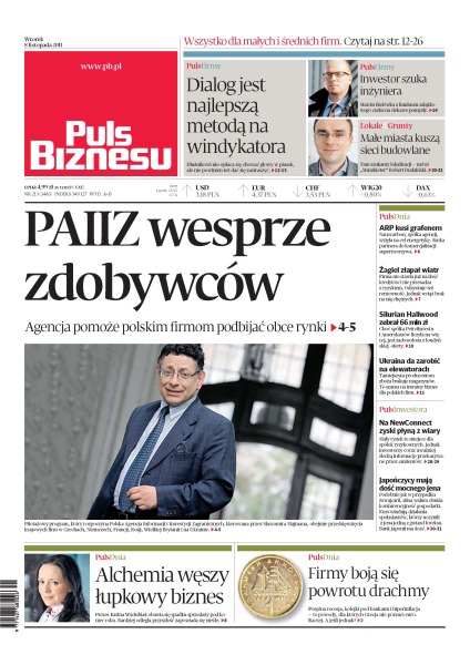 Dłużnikowi nie opłaca się chować głowy w piasek, ale nie powinien też dać się zastraszyć; Nanocarbon szuka partnera do komercjalizacji supertworzywa; Żagiel nie stawia już na ilość kredytów i nie przesadza z ryzykiem, odzyskuje rentowność, ale klientów brak; ukraińskim producentom zboża brakuje elewatorów – to szansa na intratny biznes dla polskich firm; potężna recesja pod bankami i hiperinflacja, to powody, dla których Grecja nie porzuci euro; pilotażowy program, który rozpoczyna Polska Agencja Informacji i Inwestycji Zagranicznych obejmie przedsięwzięcia krajowych firm w Czechach, Niemczech, Francji, Rosji, Wielkiej Brytanii i na Ukrainie.