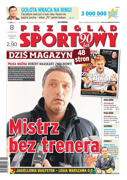 Robert Maaskant został odwołany z funkcji trenera Wisły Kraków; Andrzej Gołota wraca na ring; Ryszard Tarasiewicz został 5. w tym sezonie trenerem ŁKS-u; FC Barcelona traci trzy punkty do Realu Madryt; Mateusz Mika został awaryjnie powołany do kadry na Puchar Świata w siatkówce; Robert Kubica może wystartować już w 2012 roku.