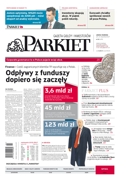 Największy w Polsce newsroom gospodarczy zbiera, analizuje i zgłębia dla Państwa najważniejsze informacje ze świata finansów. Codzienne wydanie „Parkietu”, sześć dni w tygodniu, to kilkadziesiąt artykułów o emitentach, instytucjach finansowych, gospodarce. To również opinie, felietony i wywiady z najważniejszymi ludźmi krajowej i globalnej finansjery.