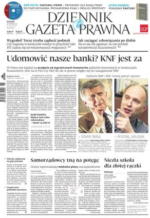 Dziennik Gazeta Prawna – codziennie obiektywne i rzetelne informacje z kraju i ze świata. Piszemy o tym, co dziś ważne i odpowiadamy na Wasze pytania – szczególnie te związane z obecnymi wyzwaniami tj. pandemia, praca zdalna. Na bieżąco wyjaśniamy zmieniające się przepisy. Wspieramy się wyjaśnieniami ministerstw i urzędów. Pomagamy unikać błędów i ostrzegamy, jakie są kary. Ponadto w każdy piątek specjalne magazynowe wydanie Dziennika Gazety Prawnej w całości z tekstami społeczno-ekonomicznymi.