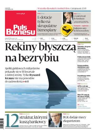 Rekiny błyszczą na bezrybiu – spółki giełdowych miliarderów pokazały się w III kwartale z dobrej strony, tylko Ryszard Krauze nie ma powodów do zadowolenia; e-dotacje tylko na skrupulatne biznesplany – w poprzednim konkursie większość wniosków trafiła do kosza; półtora miliarda złotych trafi do funduszy, a z nich do małych i średnich firm; najlepsze auto do firmowej floty; diabelska drogowa alternatywa; Polska niczym Indie – centra wiedzy mogą być polską specjalnością; Europa powinna dodrukować euro – z zaskakującym postulatem wystąpił Deutsche Bank; poszukiwany talent – aż 40 procent polskich przedsiębiorców ma problem ze znalezieniem właściwego pracownika; GPW w roli raju – ogromna zmienność na rynku akcji to najlepsza okazja do zarobku na kontraktach terminowych; 12 struktur, którymi kuszą bankowcy; BGK dodaje mocy eksporterom.