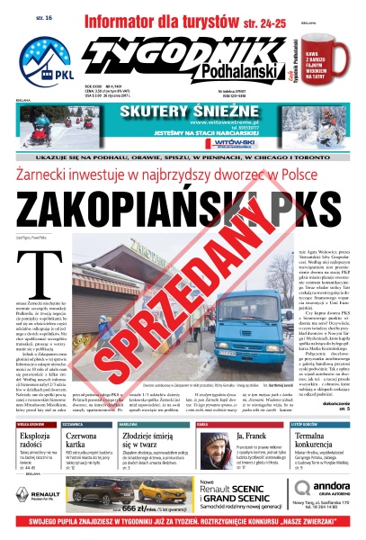 Tygodnik Podhalański to niezależne pismo regionalne – ukazuje się już od 1989 roku na terenie Podhala, Orawy, Spisza i Pienin. Od ponad dziesięciu lat dostępne jest także w Chicago i Toronto. Na jego łamach publikowane są aktualne informacje z regionu.