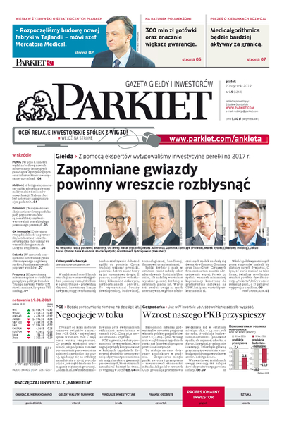 Największy w Polsce newsroom gospodarczy zbiera, analizuje i zgłębia dla Państwa najważniejsze informacje ze świata finansów. Codzienne wydanie „Parkietu”, sześć dni w tygodniu, to kilkadziesiąt artykułów o emitentach, instytucjach finansowych, gospodarce. To również opinie, felietony i wywiady z najważniejszymi ludźmi krajowej i globalnej finansjery.