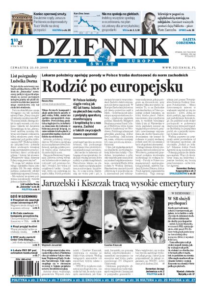 W Polsce kobiety rodzą tak jak 40 lat temu, poziom położnictwa nadal nie spełnia europejskich standardów; PO twierdzi, że na obniżce emerytur byłym esbekom budżet zaoszczędzi 600 mln zł; rząd przyjął projekt ustawy budżetowej na rok 2009; konkurencja zarzuca PKO BP nieuczciwość przy reklamie nowej 10,5-procentowej lokaty; kryzys w USA diametralnie zmienił podejście Francji do gospodarki; niski przyrost naturalny wśród Europejczyków grozi kryzysem gospodarczym.