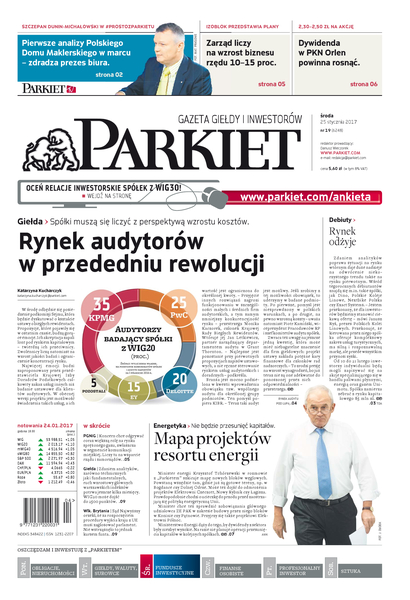 Największy w Polsce newsroom gospodarczy zbiera, analizuje i zgłębia dla Państwa najważniejsze informacje ze świata finansów. Codzienne wydanie „Parkietu”, sześć dni w tygodniu, to kilkadziesiąt artykułów o emitentach, instytucjach finansowych, gospodarce. To również opinie, felietony i wywiady z najważniejszymi ludźmi krajowej i globalnej finansjery.