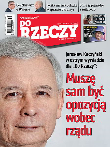 Jarosław Kaczyński w ostrym wywiadzie: muszę sam być opozycją wobec rządu; Cenckiewicz o Wałęsie; czy Polska zmienia politykę wobec Ukrainy; gdzie są pieniądze z sejfu KOD; to nieprawda, że PRL był krainą, w której orgazm był nieznany do roku 1976, i to nieprawda, że Michalina Wisłocka nadaje się na ikonę feminizmu; Elżbieta II: 65 lat na tronie; rozmowa z Ryszardem Florkiem, prezesem Fakro; mit Golema w żydowskiej tradycji – wyraz dumy z wiedzy i ostrzeżenie przed stawianiem się w roli Boga.