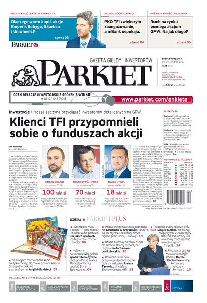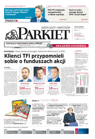Największy w Polsce newsroom gospodarczy zbiera, analizuje i zgłębia dla Państwa najważniejsze informacje ze świata finansów. Codzienne wydanie „Parkietu”, sześć dni w tygodniu, to kilkadziesiąt artykułów o emitentach, instytucjach finansowych, gospodarce. To również opinie, felietony i wywiady z najważniejszymi ludźmi krajowej i globalnej finansjery.