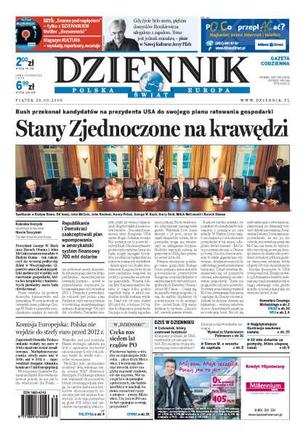 Bush przekonał kandydatów na prezydenta USA do swojego planu ratowania gospodarki; Bruksela nie widzi możliwości wprowadzenia w Polsce wspólnej waluty przed 2012 rokiem; Unia Europejska walczy z Rosją o wpływy w Mińsku; Richard Perle i Benjamin Barber spierają się co do sposobów wybrnięcia z kryzysu finansowego; Hugo Chavez umacnia światowy alians przeciw USA; Simon M. Kameruńczyk oskarżony o zarażanie kobiet wirusem HIV jest śmiertelnie chory i nie może być sądzony.