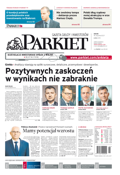 Największy w Polsce newsroom gospodarczy zbiera, analizuje i zgłębia dla Państwa najważniejsze informacje ze świata finansów. Codzienne wydanie „Parkietu”, sześć dni w tygodniu, to kilkadziesiąt artykułów o emitentach, instytucjach finansowych, gospodarce. To również opinie, felietony i wywiady z najważniejszymi ludźmi krajowej i globalnej finansjery.