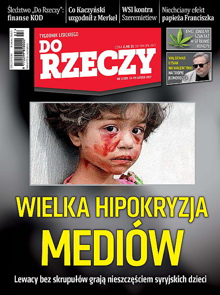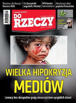 Wielka hipokryzja mediów: lewacy bez skrupułów grają nieszczęściem syryjskich dzieci; śledztwo „Do Rzeczy”: finanse KOD; co Kaczyński uzgodnił z Merkel; WSI kontra Szeremietiew; niechciany efekt papieża Franciszka; emocjonalny szantaż w sprawie konopi; Waldemar Łysiak na Walentynki: na tropie jednorożca.