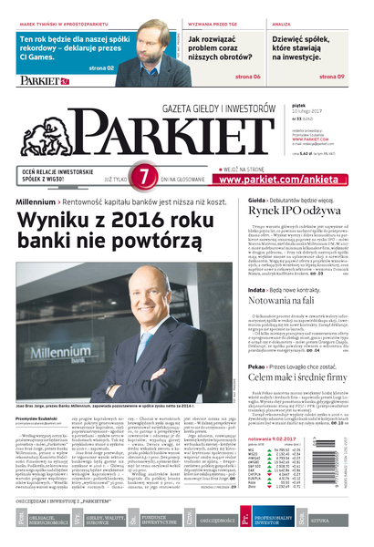 Największy w Polsce newsroom gospodarczy zbiera, analizuje i zgłębia dla Państwa najważniejsze informacje ze świata finansów. Codzienne wydanie „Parkietu”, sześć dni w tygodniu, to kilkadziesiąt artykułów o emitentach, instytucjach finansowych, gospodarce. To również opinie, felietony i wywiady z najważniejszymi ludźmi krajowej i globalnej finansjery.