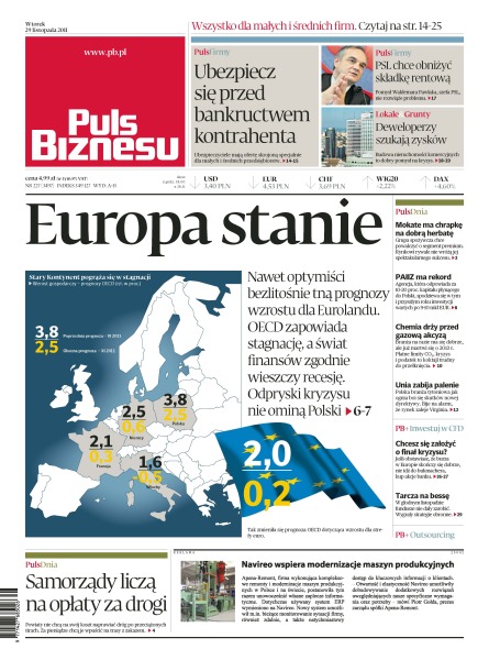 PSL chce obniżyć składkę rentową; budowa nieruchomości komercyjnych to dobry pomysł na przetrwanie kryzysu w branży deweloperskiej; polscy posłowie zadłużają się chętniej niż reszta społeczeństwa – głównie w PKO, który często mylą z Pekao; Organizacja Współpracy Gospodarczej i Rozwoju (OECD) prognozuje, że w przyszłym roku strefa euro pogrąży się w stagnacji.