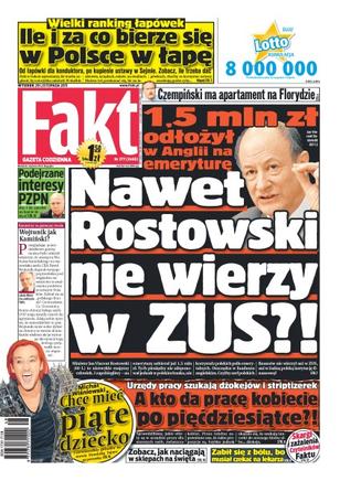 Minister finansów Jacek Rostowski oszczędza pieniądze w funduszu angielskim; Michał Wiśniewski chce mieć piąte dziecko; urzędy pracy w Polsce mają oferty dla dżokeja i tancerki na rurze, dla zwykłych osób propozycji jest niewiele; Wrocław odstrasza kuny za pomocą tygrysich odchodów.