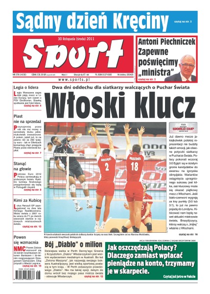 Legia Warszawa zagra dziś piąty mecz w Lidze Europy – tym razem z PSV Eindhoven; podczas Euro 2012 Polacy zamieszkają w stołecznym hotelu Hyatt; czy Zdzisław Kręcina zostanie wyrzucony z PZPN; w Oestersund rozpoczyna się Puchar Świata w biathlonie sezonu 2011/12.