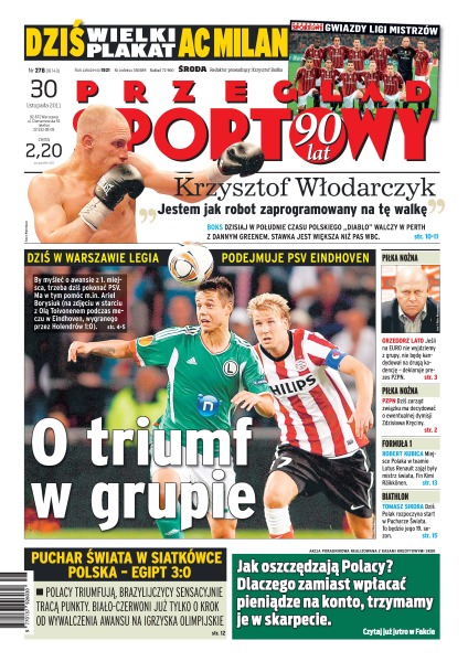 Dzisiaj w południe czasu polskiego Krzysztof „Diablo” Włodarczyk walczy w Perth z Dannym Greenem; Grzegorz lato deklaruje, że jeśli Polska na Euro nie wyjdzie z grupy, nie będzie kandydował na drugą kadencję; dziś zarząd PZPN ma decydować o ewentualnej dymisji Zdzisława Kręciny.